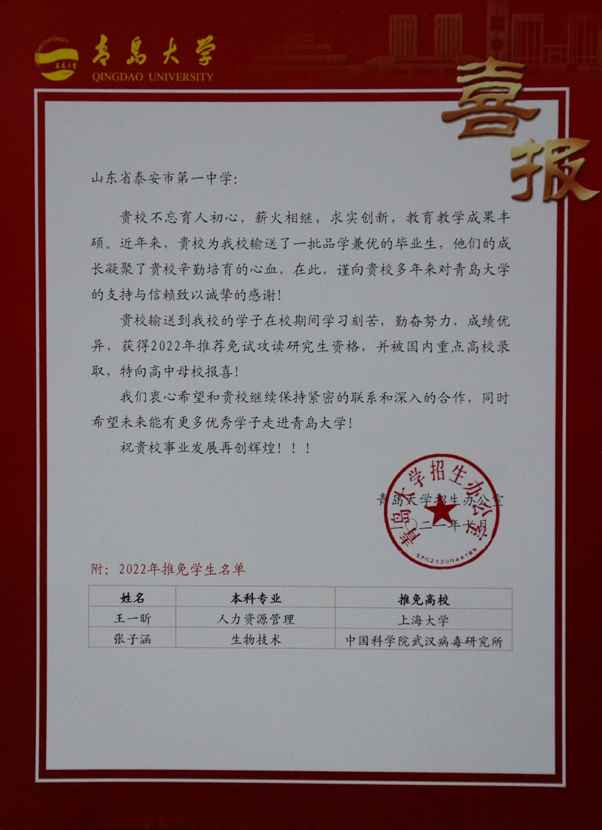 泰安一中成为香港中文大学(深圳)优质生源基地