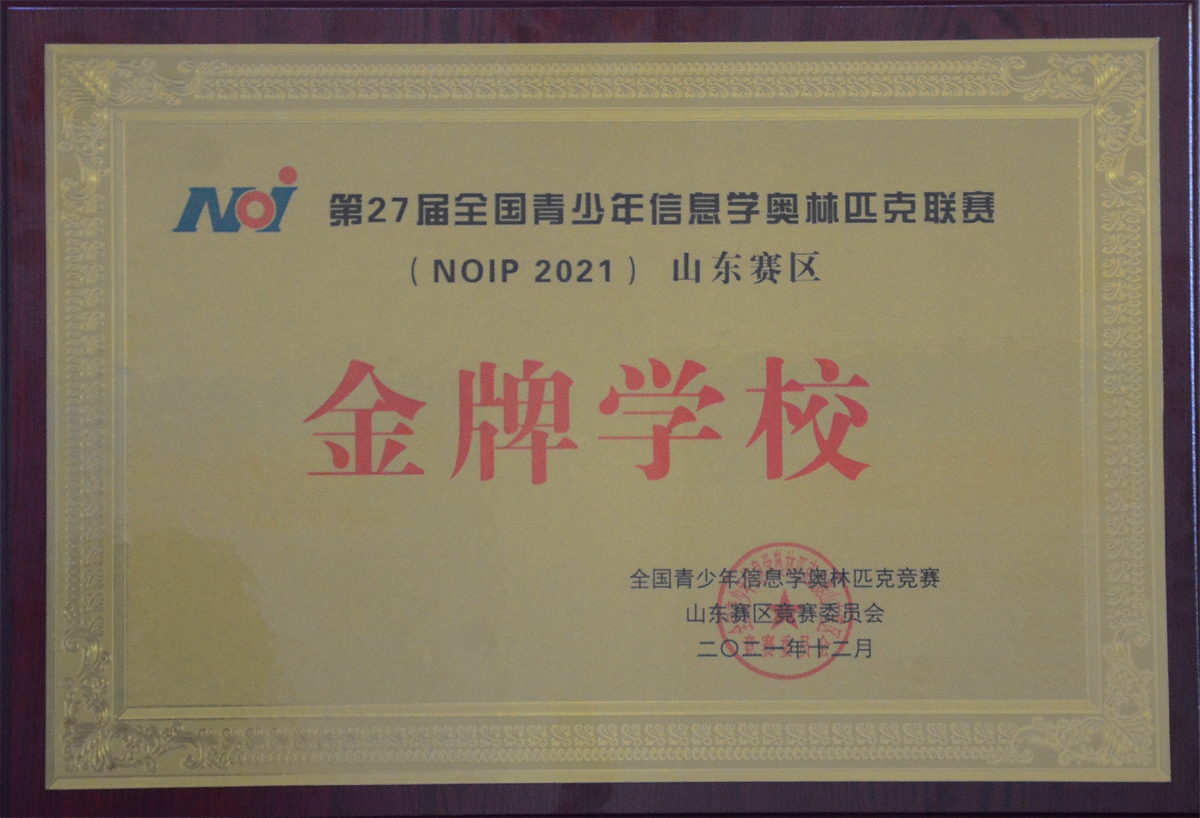 热烈祝贺我校获第27届全国青少年信息学奥林匹克联赛山东赛区“金牌学校”