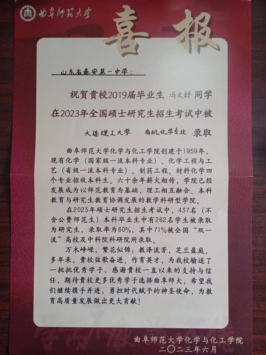 泰安一中2014级中美班学生贺逸菲获美国加州大学伯