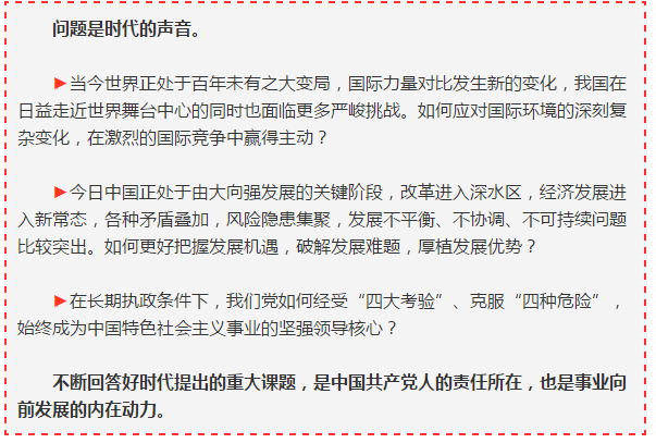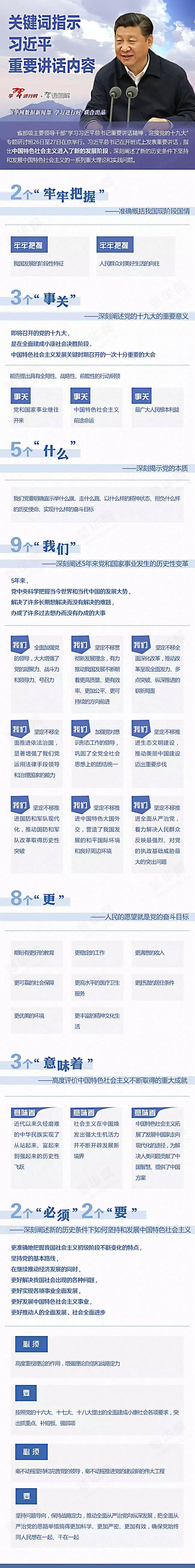 党的十八大以来的5年,是党和国家发展进程中很不平凡的5年。5年来,以习近平同志为核心的党中央科学把握当今世界和当代中国的发展大势,顺应实践要求和人民愿望,团结带领全党全国各族人民同心协力、苦干实干,解决了许多长期想解决而没有解决的难题,办成了许多过去想办而没有办成的大事。 坚定不移贯彻新发展理念,有力推动我国发展不断朝着更高质量、更有效率、更加公平、更可持续的方向前进; 坚定不移全面深化改革,推动改革呈现全面发力、多点突破、纵深推进的崭新局面; 坚定不移全面推进依法治国,显著增强了我们党运用法律手段领导和治理国家的能力; 加强党对意识形态工作的领导,巩固了全党全社会思想上的团结统一; 坚定不移推进生态文明建设,推动美丽中国建设迈出重要步伐; 坚定不移推进国防和军队现代化,推动国防和军队改革取得历史性突破; 坚定不移推进中国特色大国外交,营造了我国发展的和平国际环境和良好周边环境; 坚定不移推进全面从严治党,形成了反腐败斗争压倒性态势,党内政治生活气象更新,党的执政基础和群众基础更加巩固,为党和国家各项事业发展提供了坚强政治保证。 党和国家的历史性变革和历史性成就,极大地振奋了党心军心民心,赢得了国际社会广泛认同,充分证明我们党是充满生机活力的伟大的党,中国特色社会主义事业是蓬勃兴旺的伟大事业。 成就来之不易,启示弥足珍贵。走过砥砺奋进的5年,我们更加深刻地认识到,办好中国的事情,关键在党,只有全面加强党的领导,坚定不移全面从严治党,才能有效增强党的凝聚力、战斗力和领导力、号召力,发挥好党总揽全局、协调各方的领导核心作用;改革创新是事业发展的动力之源、活力之本,只有坚持改革不停顿、开放不止步,不断推进理论创新、制度创新、科技创新、文化创新等各方面创新,才能开拓发展新路径、开创事业新局面;求真务实、真抓实干是成事之基,只有发扬钉钉子精神,激发担当精神,以抓铁有痕、踏石留印的韧劲狠抓落实、务求实效,才能一步一个脚印向前迈进,推动各项事业行稳致远。 历史的脚步总在攻坚克难中曲折前行。坚持和发展中国特色社会主义是一项长期的艰巨的历史任务,必须进行伟大斗争、建设伟大工程、推进伟大事业,才能实现伟大梦想。站在新的历史起点上,面对新的时代重任,让我们在以习近平同志为核心的党中央坚强领导下,奋力开创党和国家事业发展新局面,向着中华民族伟大复兴的光辉彼岸扬帆奋进。