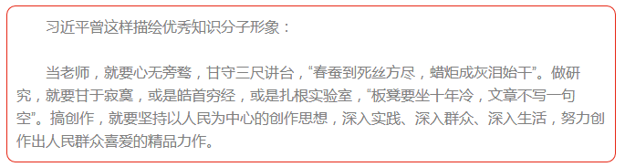 2016年4月26日,中共中央总书记、国家主席、中央军委主席习近平在安徽合肥主持召开知识分子、劳动模范、青年代表座谈会并发表重要讲话。新华社记者 李学仁 摄 优秀知识分子:实现中国梦的重要力量 习近平历来尊重知识分子。他指出,“我国广大知识分子是社会的精英、国家的栋梁、人民的骄傲,也是国家的宝贵财富”;他强调,“全社会都要关心知识分子、尊重知识分子,营造尊重知识、尊重知识分子的良好社会氛围”。