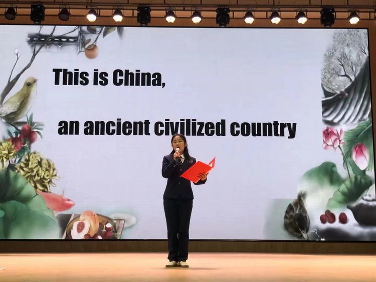 27位选手用自己深刻的理解生动诠释了中国文化,中国精神。同学们的热情也激励着老师们,在比赛最后环节英语组老师们进行即兴诗朗诵,表达她们对于祖国的热爱。