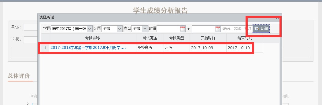 6、选择学校、班级、学生,然后点击下方的对应科目即可查看对应的成绩。