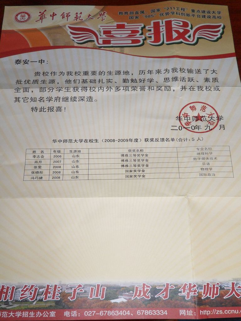 [图片]喜报:我校多名考取华中师大的学生获得奖励
