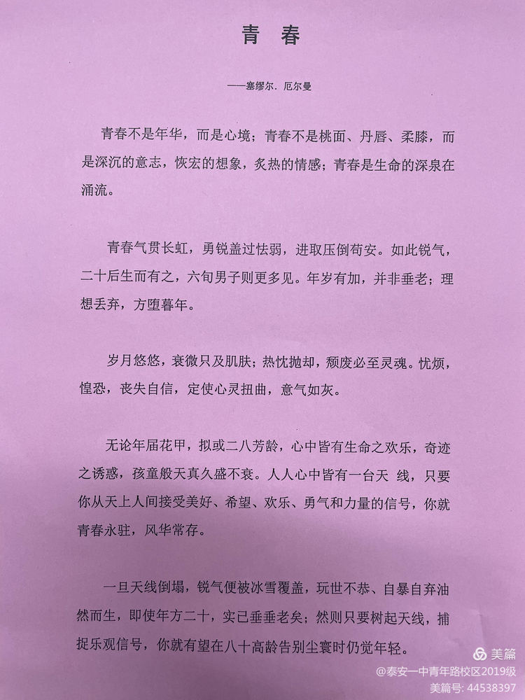 《温暖青春之心灵,拥抱青春之少年》 ——泰安一中2019级召开心理健康教育班会 |