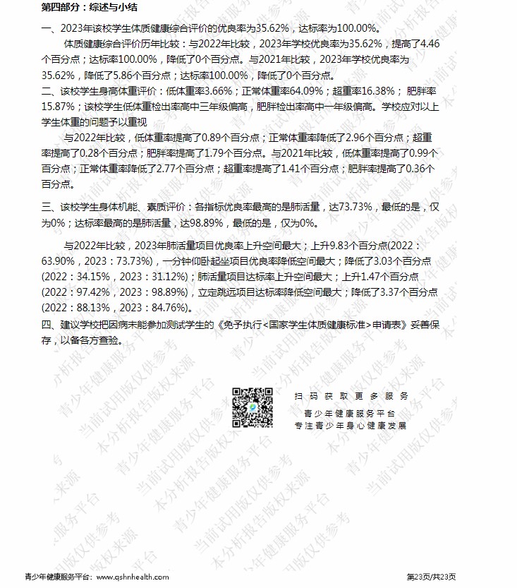 【体育评价】泰安一中2023年度学生体质健康测试成绩评价